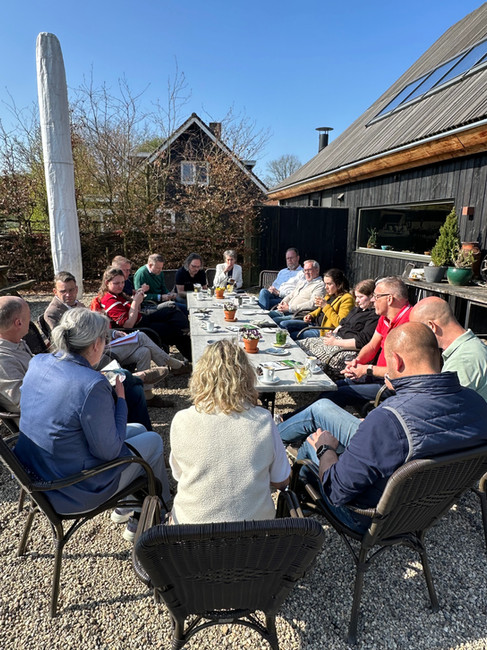 Na de workshop volgde een rondleiding op Boerderij Mossel, een historische plek: grootouders Prangsma waren eigenaar van de boerderij. Na de oorlog begon oma een theetuin en dit is later overgenomen door de ouders van Danny. Nu zijn Chantal en Danny Prangsma de huidige bewoners en uitbaters van Boerderij Mossel. De workshop vond plaats op de vide van de relatief nieuwe Schaapskooi. De deelnemers namen een kijkje in de oude boerderij, die omgebouwd is als groepsaccommodatie, de keuken en de pipowagen en zagen / hoorden hoe duurzaamheid hier concreet wordt toegepast: